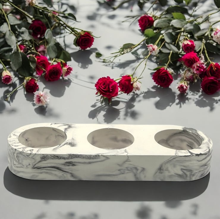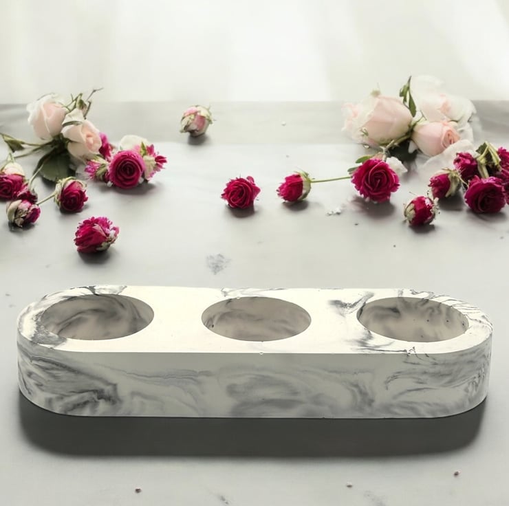 Created with the timeless elegance of marble in mind this beautiful oval triple tealight holder pot was meticulously designed and crafted in my small home studio in Standish. It is made from premium alpha plaster called Stonecast, which gives it a smooth and luxurious feel.