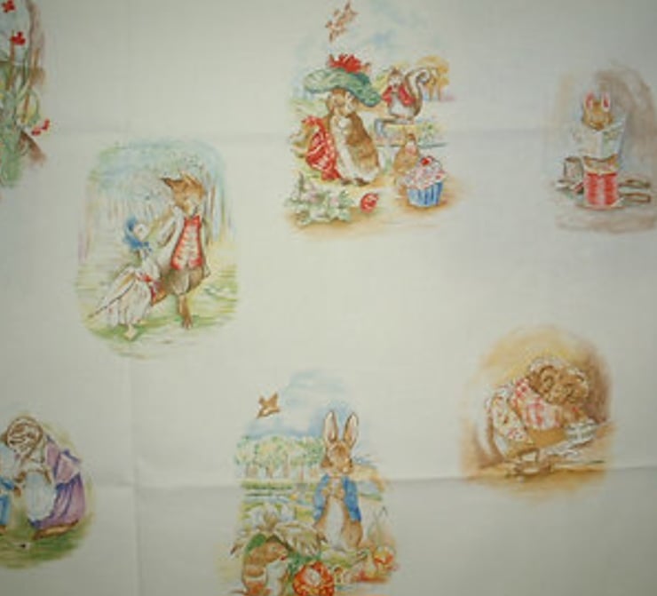 This gorgeous Peter Rabbit fabric by Jane Churchill from The Nursery Tales Collection - is just wonderful with its fabulous images that are amazing. The fabric is 100% cotton and is unused and there are no marks. It is available by the yard, wide with an off white background. Pictures 1 - 4 show the fabric and picture 5 onwards show more lovely vintage fabric available in other listings