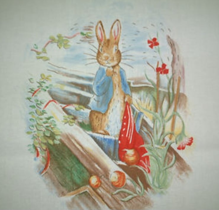 Gorgeous super quality Jane Churchill - Peter Rabbit/ Beatrix Potter white background amazing fabric.1989 unused fabric. Pattern repeat 66cm/26" Print width 132cm/52" .