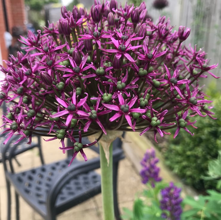 Allium in the garden have a 'don't mess with me' look to them, strong stems, strong coloured flowers with a strong honey scent, and give the border a strong sense of majesty. I love them!