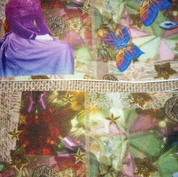 You can keep the fabric as it is, frame it, or use it as a focal point of a sewing project, use slow sewing ideas, embroidery stitches, sequins, beads, scrap fabric to make it into a bigger panel, use it as a patch for a garment with a tear in it, part of a junk journal cover, make a small zipped bag, the choice is yours.