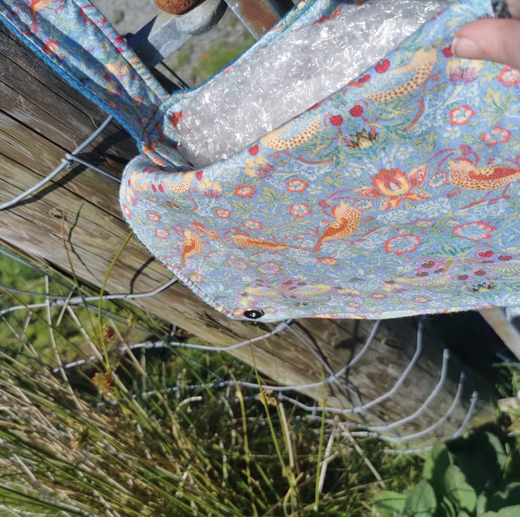 It lined with a lovely William morris fabric (strawberry Thief) with 4 slip pockets for all you're essentials such as phones and keys