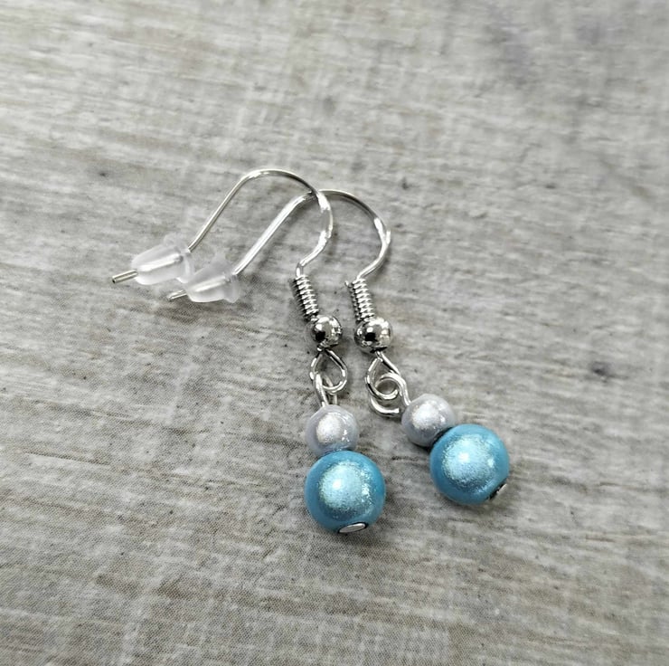 Top grey bead is 4mm with the turquoise bead being 6mm.