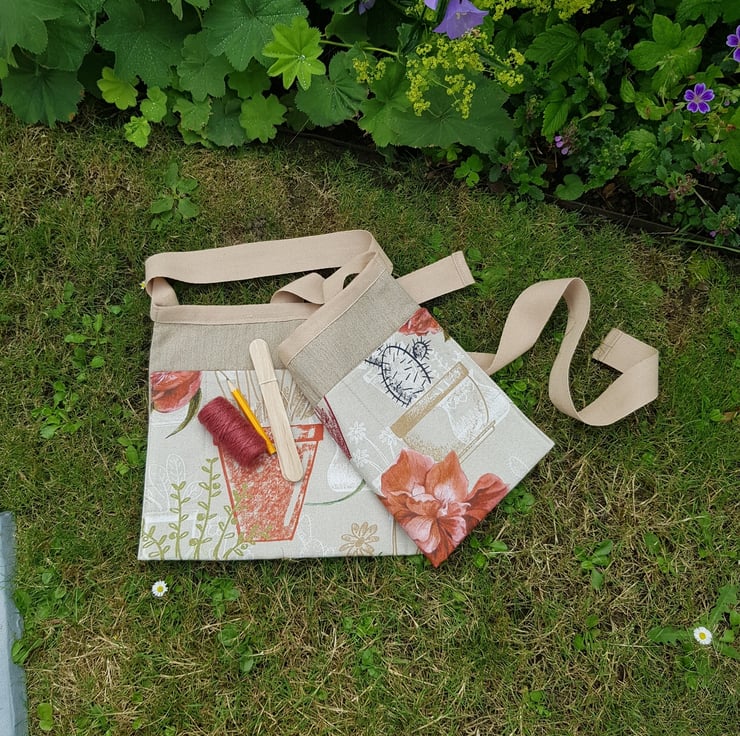 The apron has 2 small pockets for pencil & labels, one for the twine and a larger central one for seeds etc.