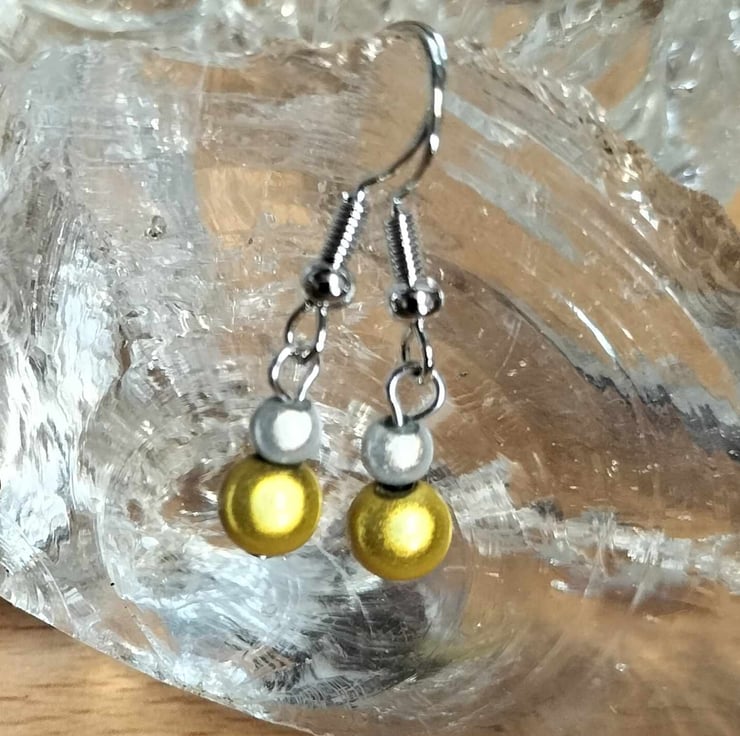 Top grey bead is 4mm with the yellow bead being 6mm.