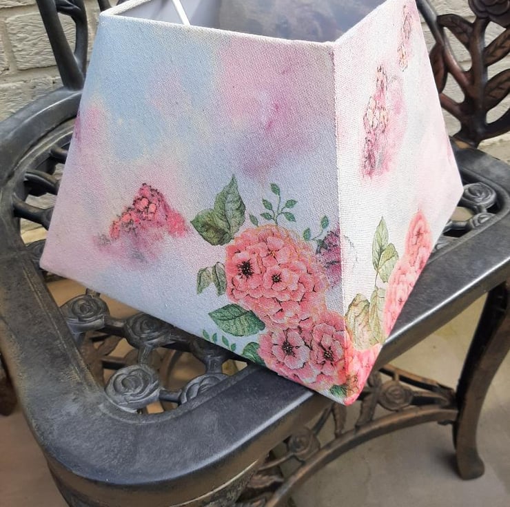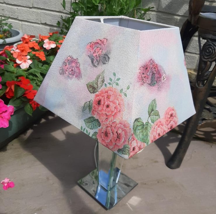 PRETTY IN PINK & GREY LAMPSHADE WITH HYDRANGEAS