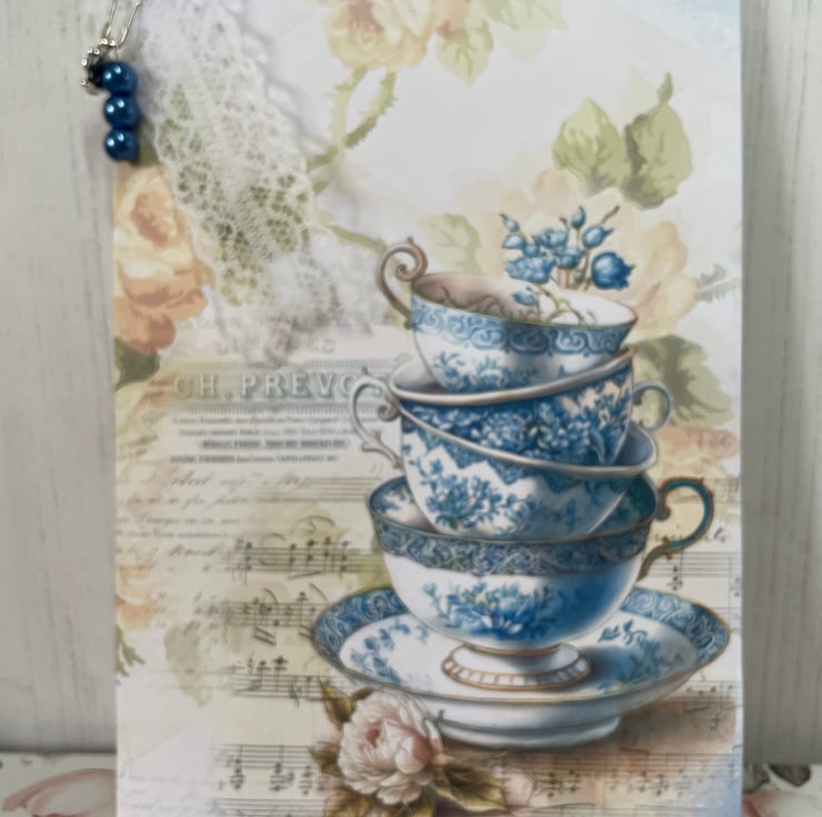 Folio - Blue tea cups and birds by Carolee Crafts PB9 0033