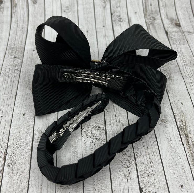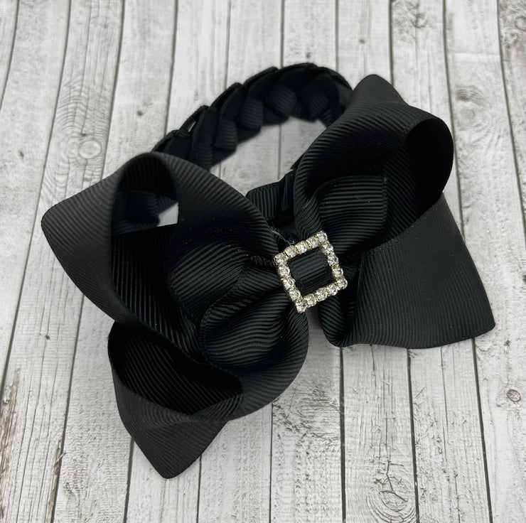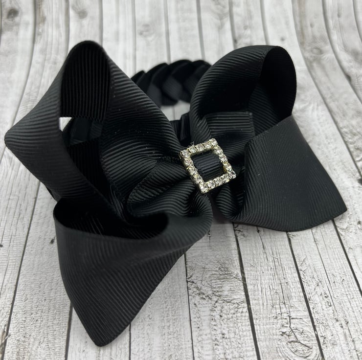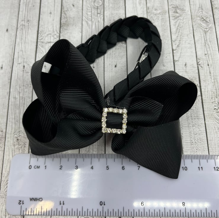 Our Black Bun-wrap is handmade here in our little shop. It is made from the best quality Grosgrain ribbon. The Bun-wrap is really elegant and looks extremely smart wrapped around your little one's bun. It clips in at the front of the bun then the tail wraps around the bun and clips beneath the bow at the front to complete the look, tail is 21 cm.