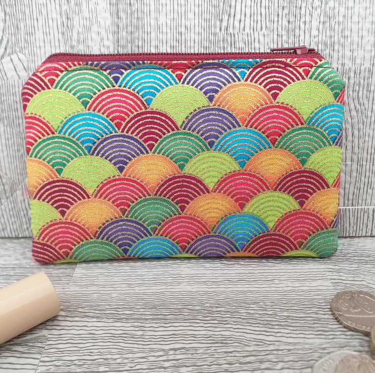 Coin Purse handmade by me in Beautiful Multicoloured Rainbow 100% Cotton outer fabric and premium cotton lining