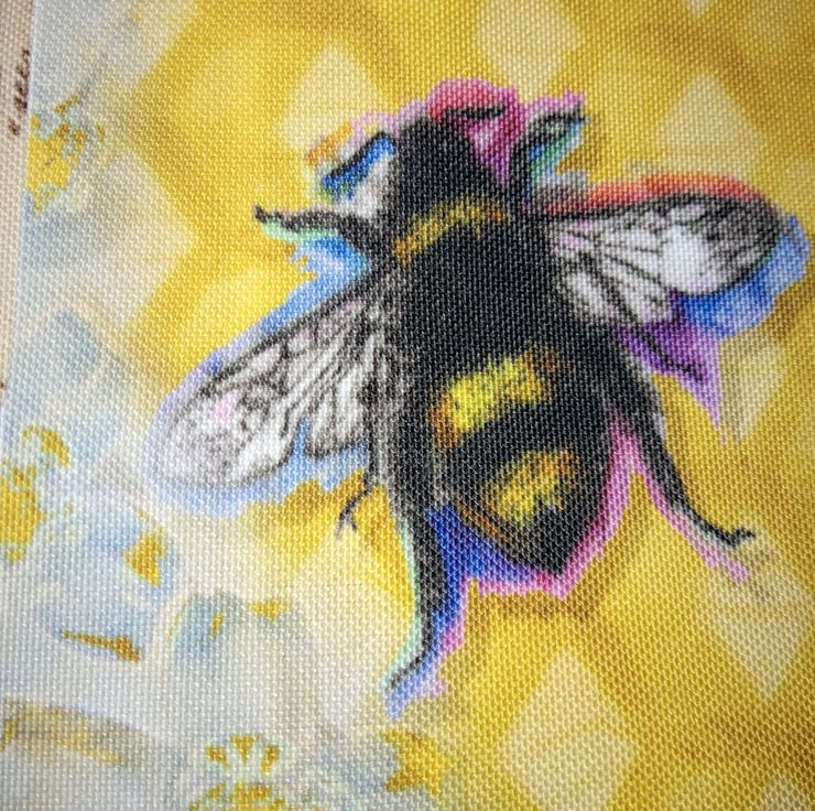 This panel features a vibrant yellow honeycomb backdrop with a flurry of pale flowers, also a very colourful bee makes this panel ideal for beautiful nature themed projects.