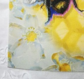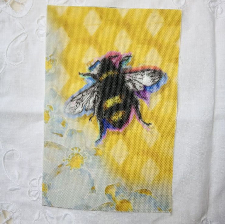 I have used photo editing to create a fabric panel measuring 10x15cm, professionally printed on 250gsm soft canvas and is washable. I originally made my panels to use as part of a slow sew project but you can use it for anything you like.