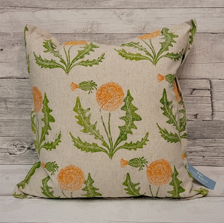 Hand printed dandelion cushion