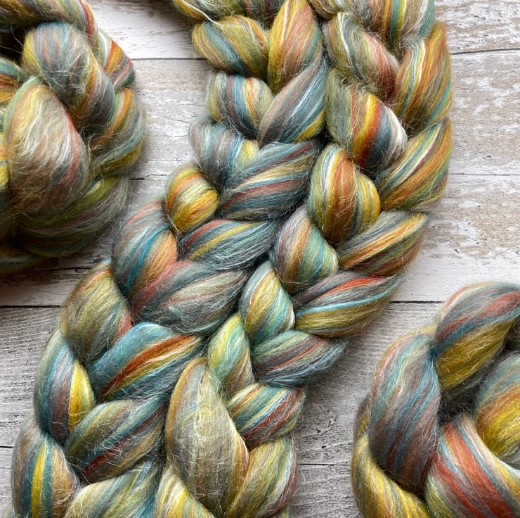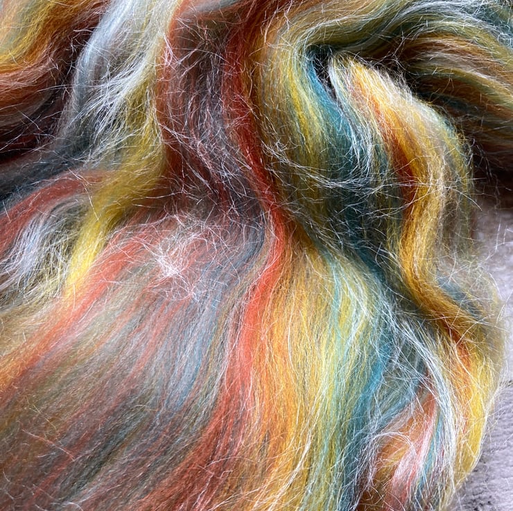 A wonderfully richly coloured blend combining the gentle feel of the soft tussah silk with beautiful 21mic white Merino. The result is a luxurious cloud like blend that can be put to many different uses such as felting or spinning.
