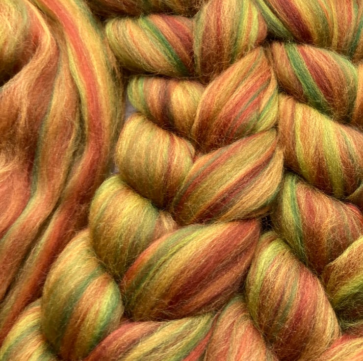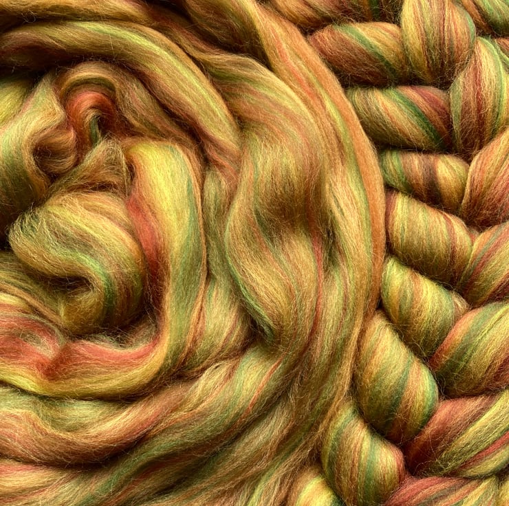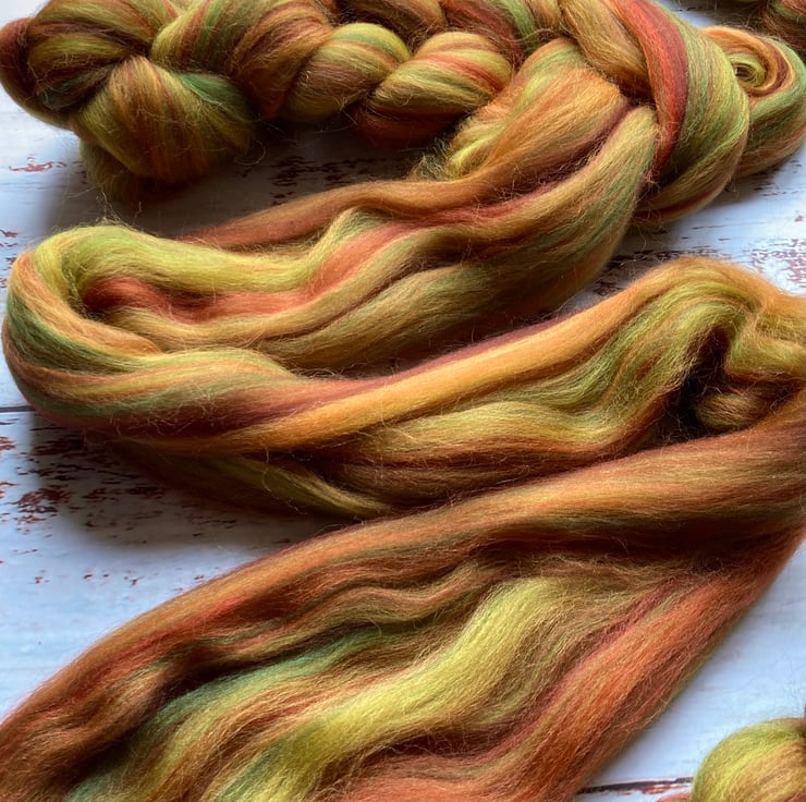 A wonderfully richly coloured blend of 21mic white Merino. The result is a luxurious cloud like blend that can be put to many different uses such as felting or spinning.