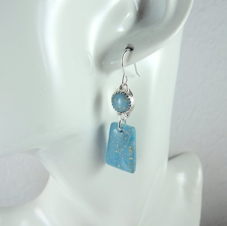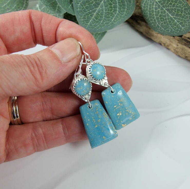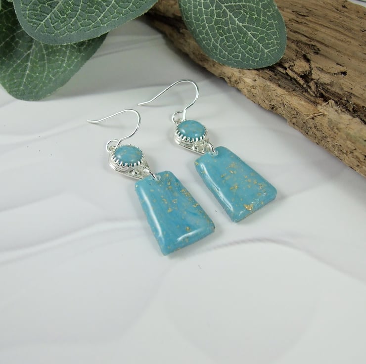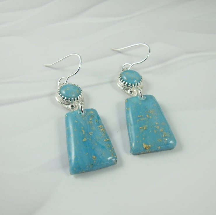 Sterling Silver Earrings with Turquoise polymer clay with gold flecks. These are end of line as I no longer work with polymer clay.
