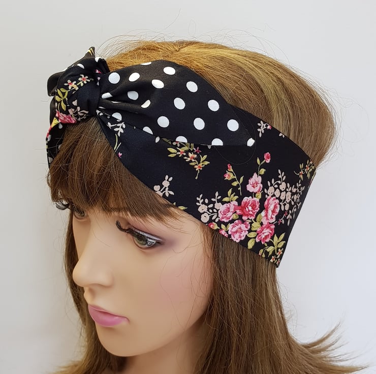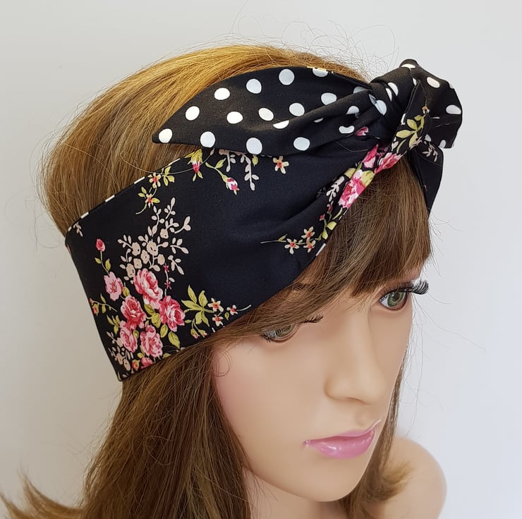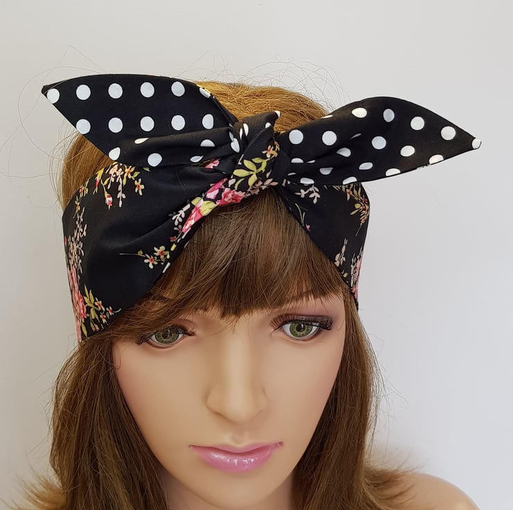 This rockabilly headband is made from printed 100% cotton fabric. The headband is NOT WIRED, NOT STRETCHY, UNTIED.