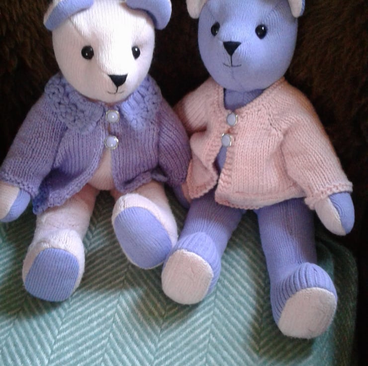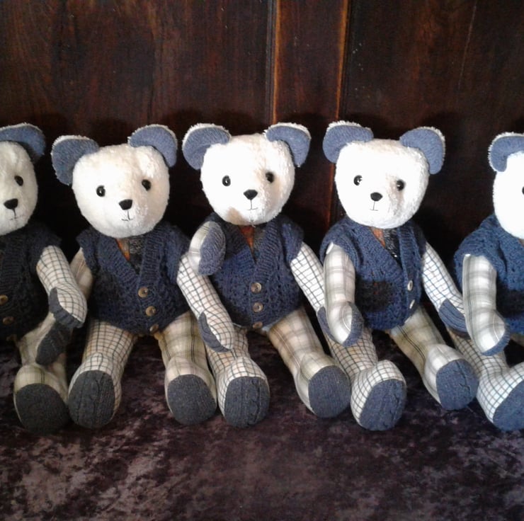As you can see from the photos I have included hand knitted items for the bears such as cardis, waistcoats and scarves. These are available if you would like them and made to suit each bear. Please note these bears are not intended as keepsakes and not suitable as toys for young children.