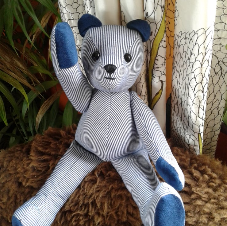 Please allow 2 weeks for completing and posting a custom made bear. I will need you to post me 2 items of clothing, as a guide, although we can discuss specifics. Bears are to be paid for through Folksy on Paypal or Stripe.
