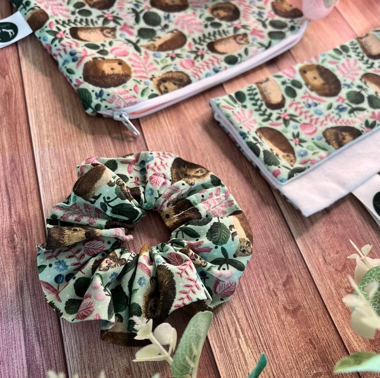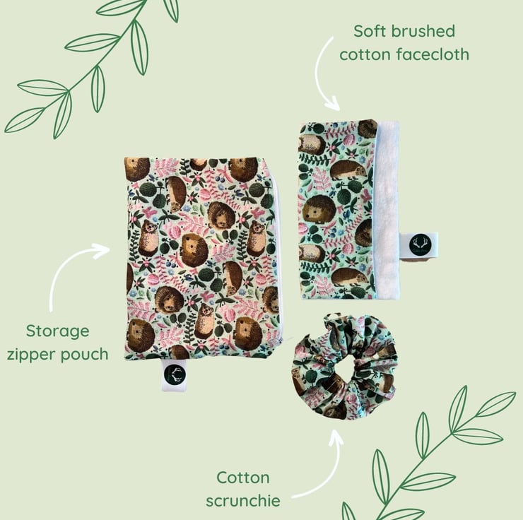 Celebrate her special day with our Birthday Gal Pamper Gift Set, a delightful hedgehog gift collection that includes a storage pouch, face cloth, and scrunchie. Perfect for birthday gift ideas, this set offers a combination of practical and pampering items, each featuring our bespoke hedgehog pattern by Tahlia Paige. Not only does this set make for a charming and thoughtful present, but 5% of the proceeds also go towards hedgehog conservation through the People's Trust for Endangered Species.