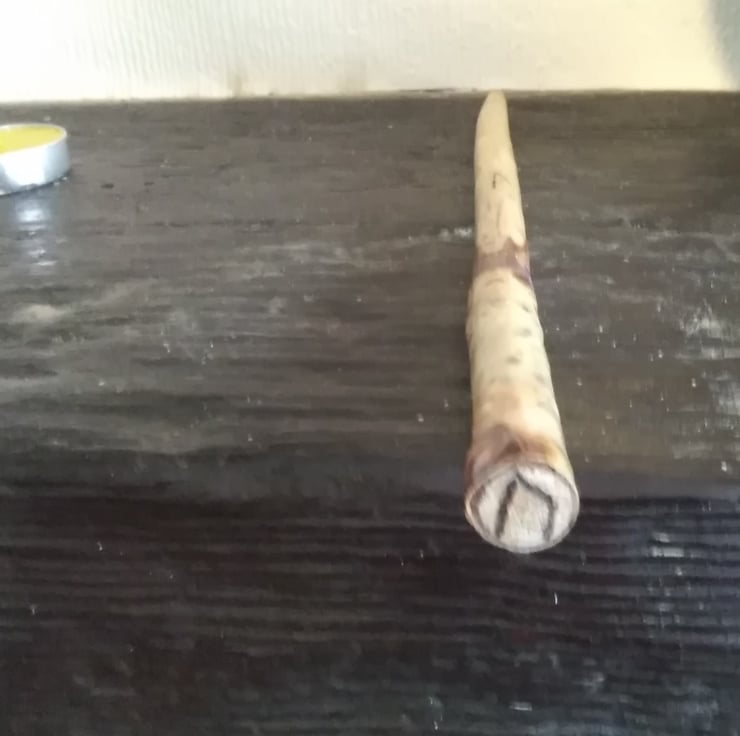 Hand-made from locally sourced sustainable Siberian Birch and with wood-burned 'strength' and 'flow' runes. Moon-bathed.