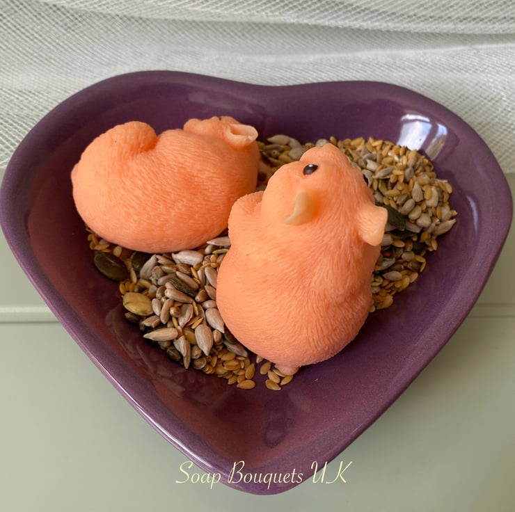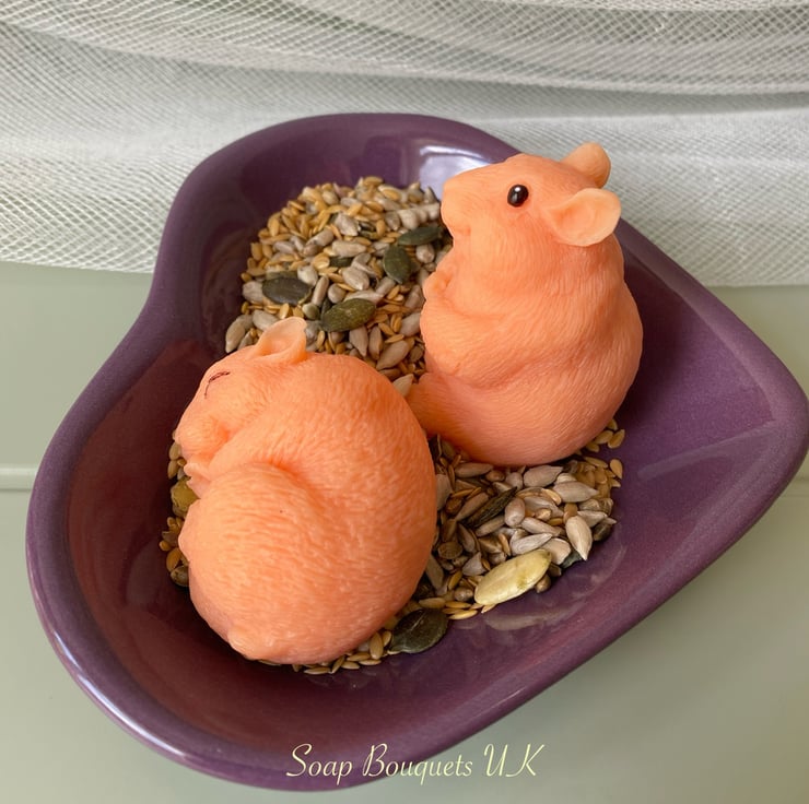 Discover our delightful Handcrafted Vegan Soap Set featuring two charming hamsters/guinea pigs. These sweet creations are designed to add a playful touch to any space, bringing both joy and a lovely fragrance to your bathroom or kitchen.