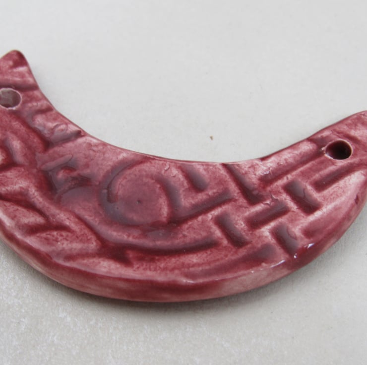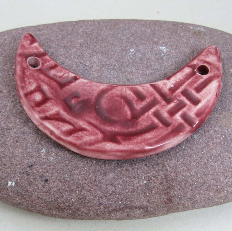 Stoneware ceramic bib pendant patterned with celtic knotwork.