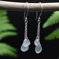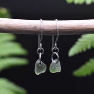 These dainty little hoop earrings have been made using recycled sterling silver, and sea glass collected locally in the Scottish Highlands. The tiny handmade sterling silver 925 hoops have an inside diameter of 1cm. The dangles are made from sterling silver, and feature a small piece of amber sea glass. The earrings measure approximately 2.5cm from the top of the hoop, and have a 'dangle length' (from the bottom of the hoop) of around 1.5cm. All the sterling silver components have been oxidised using liver of sulphur to give an antiqued finish. The small size of these earrings makes them perfect for everyday wear!