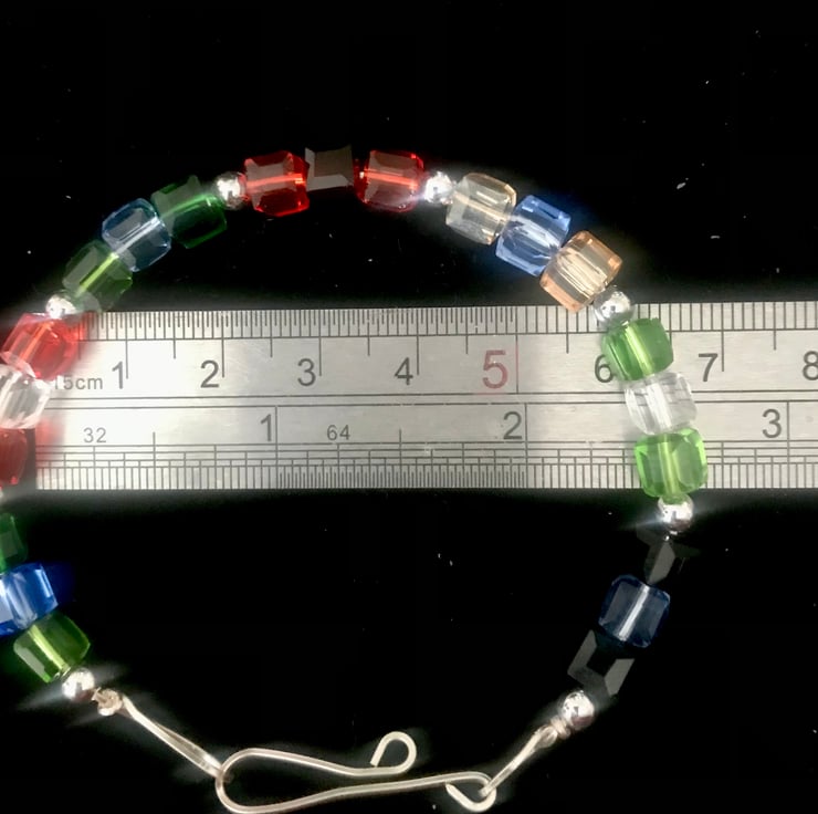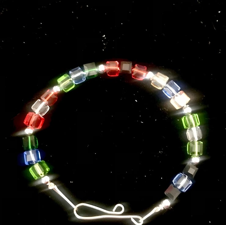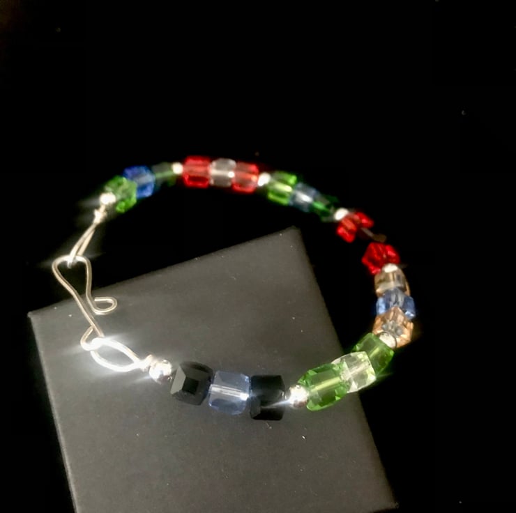 Boho Silver Bangle Bracelet - Rare Square Glass Beads. in vibrant colours. This bangle is large and the perfect addition. to your jewellery collection.