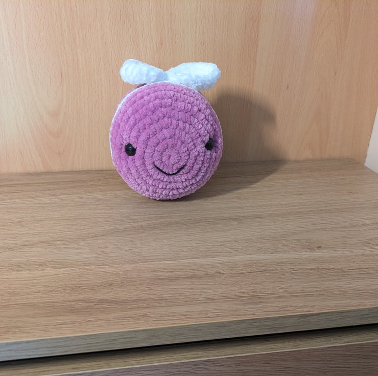 A lovely soft bumblebee in dark purple and white. Made from chenille yarn.
