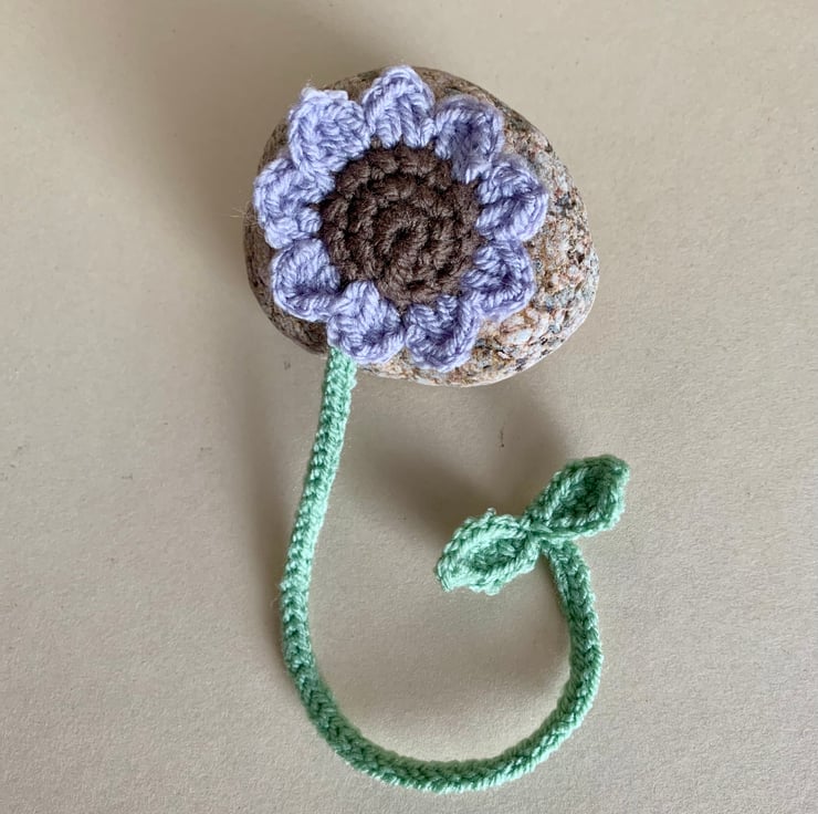 These bookmarks are handmade in my home in Lancashire. Each one is crocheted using acrylic yarn and measures approximately 24cm in length, fitting an average paperback novel. The flower is lightly stuffed with yarn, and measures 5cm in diameter. The cord is made with chain and slip stitch.