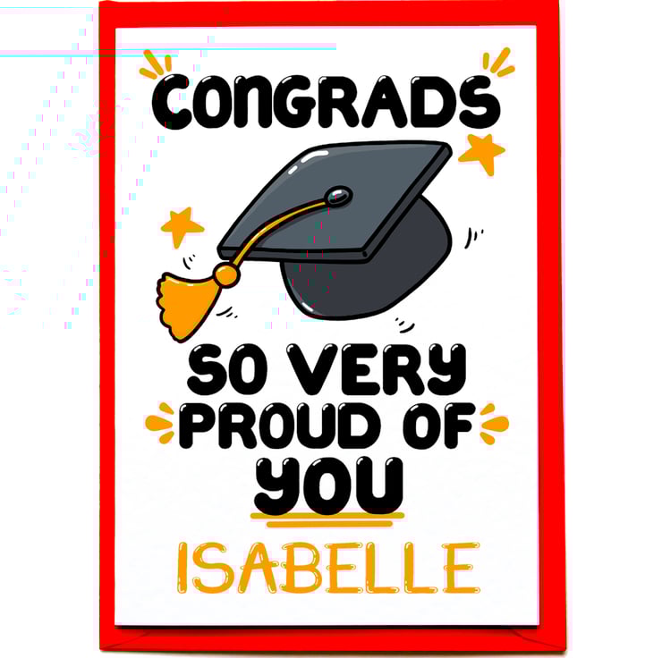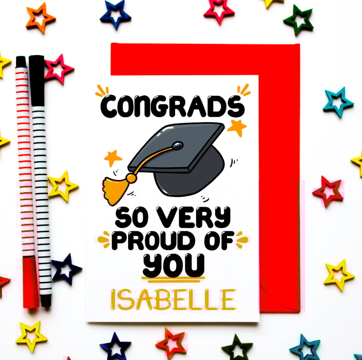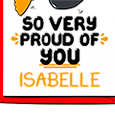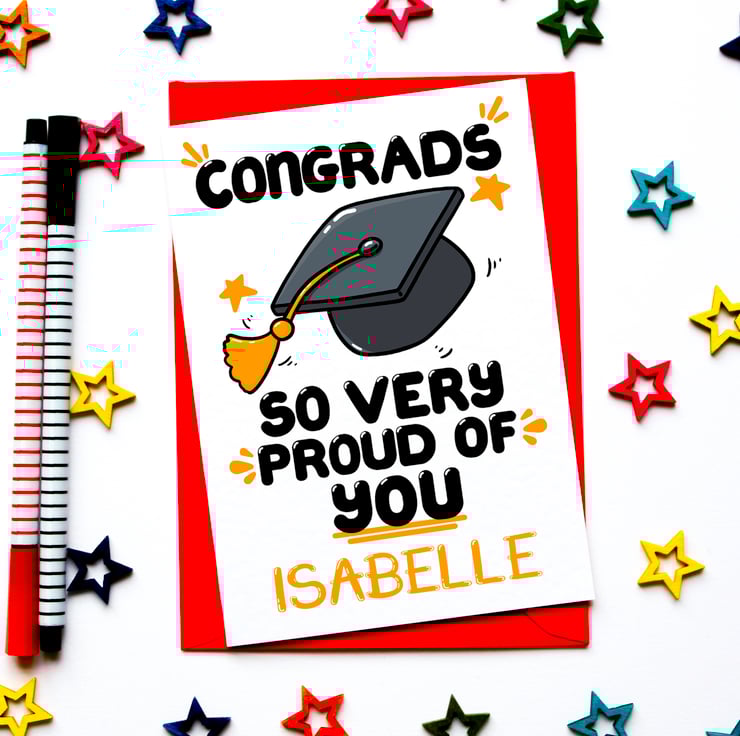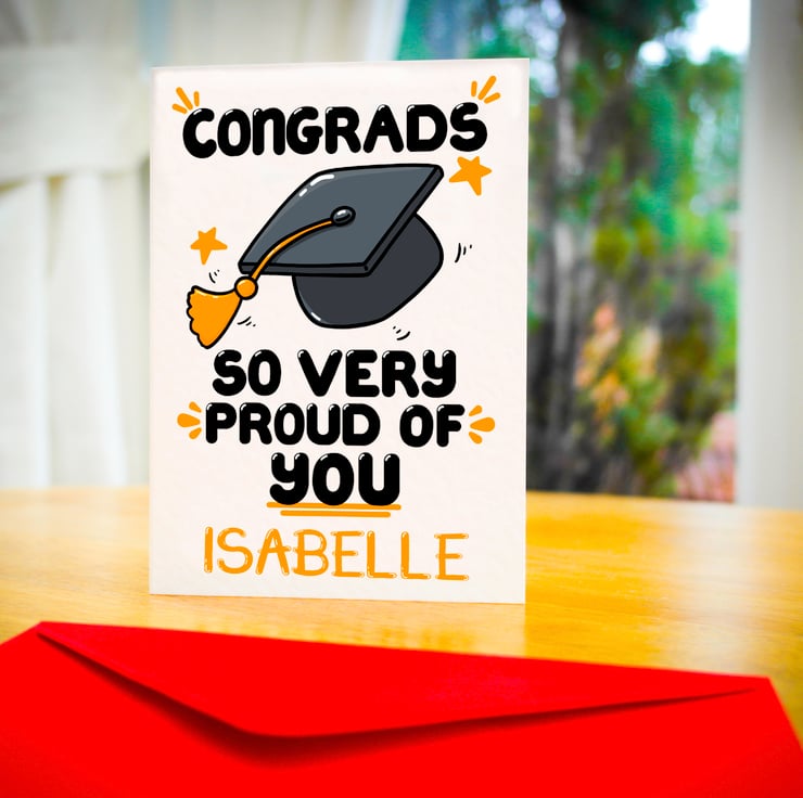 Greeting on front: CONGRADS SO VERY PROUD OF YOU (NAME)