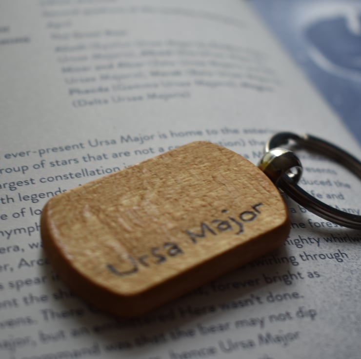 A wooden keyring, with stars burnt into the grain and makes the perfect gift for any universe fan.