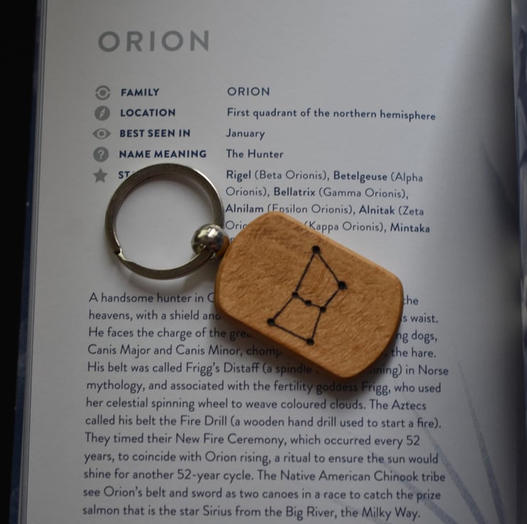 A wooden keyring, with stars burnt into the grain and makes the perfect gift for any universe fan.