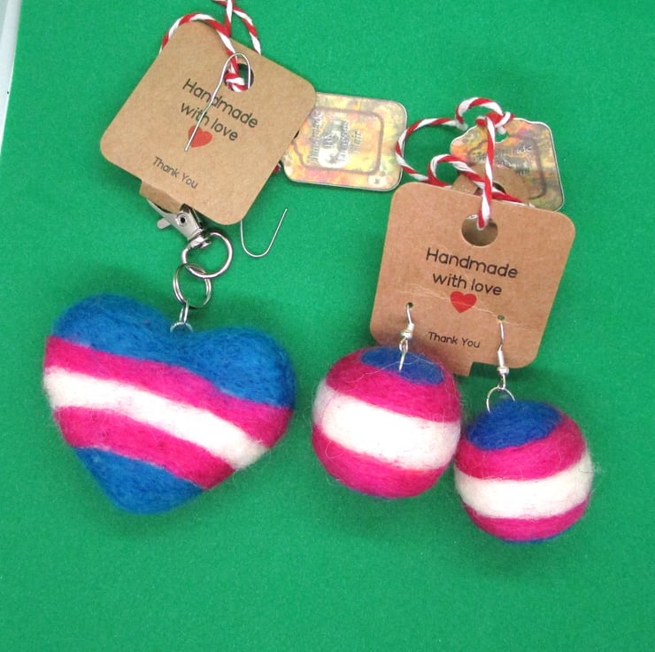 Transgender Pride Felted Ball Drop Earrings keyring  Keychain Brooches Pins Clip
