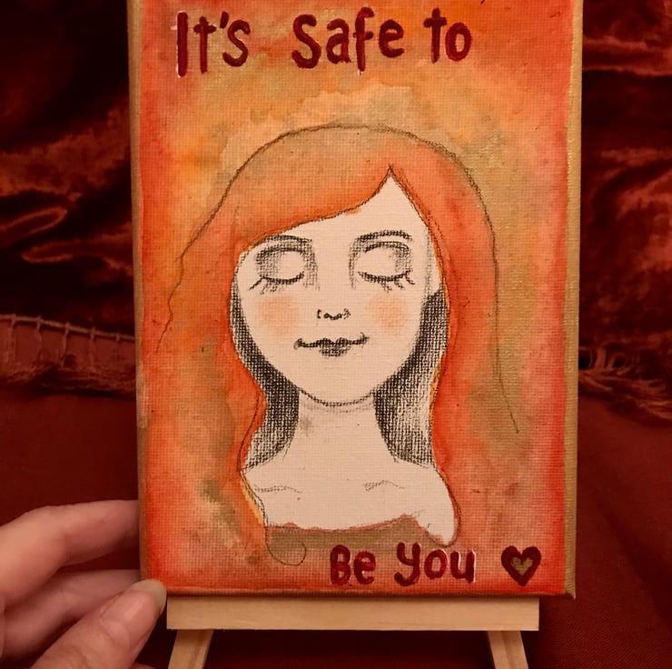 Original painted canvas "It's safe to be you" will come with the display easel. xxx