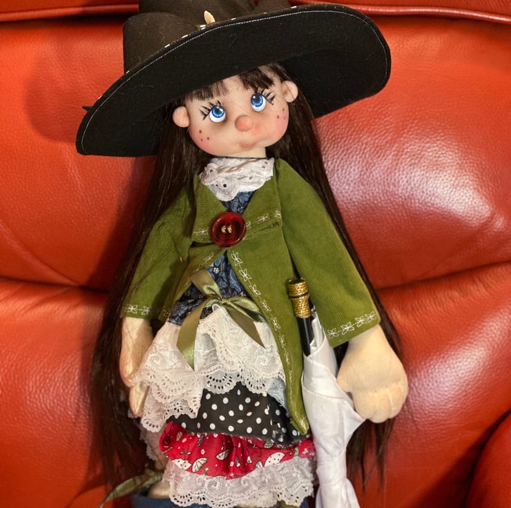 Discover the charm of this very unique handmade OOAK doll with an umbrella crafted with care. Made from high-quality cotton and corduroy fabric, this doll features a flexible wire skeleton running through her body, allowing for a wide range of expressive poses.