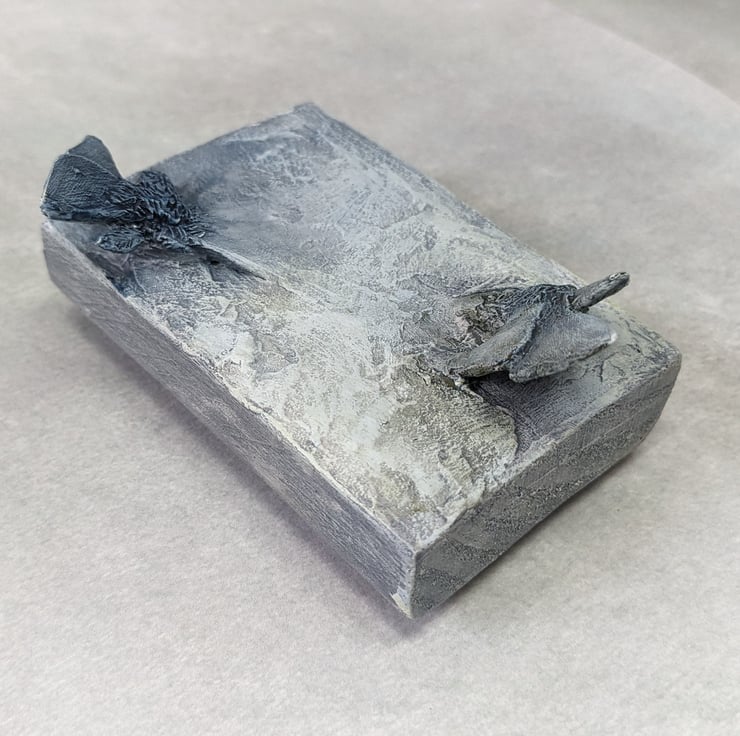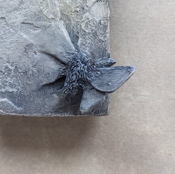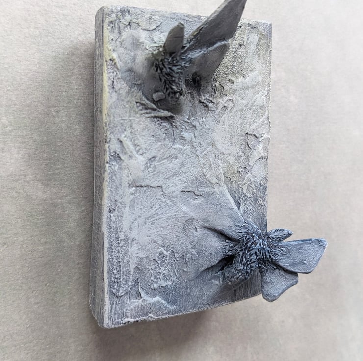 A one off Moth sculpture made from a variety of different materials including cast resin, poly filler, polymer clay, wood and paint. Each one is hand made and then painted.