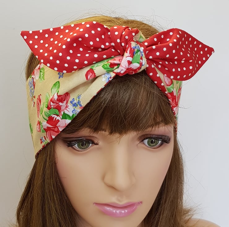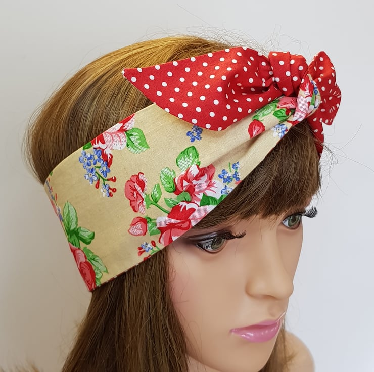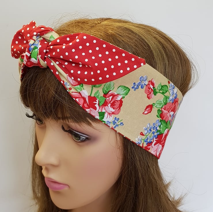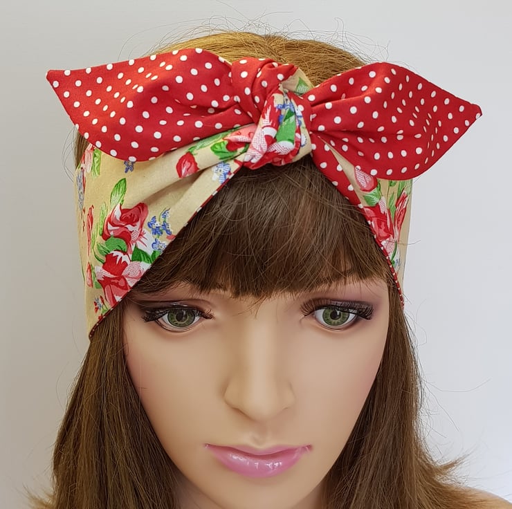 This rockabilly headband is made from printed 100% cotton fabric. The headband is NOT WIRED, NOT STRETCHY, UNTIED.