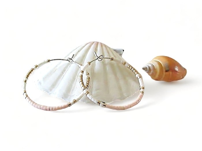 For this pair of handmade silver plated hoop earrings I again chose high quality Miyuki Delica 1.8mm seed beads.