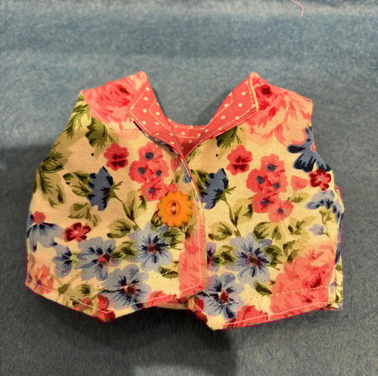 The waistcoat is closed with a button and snap fastener. Suitable for children over 3 years. Small parts. Teddy not included.
