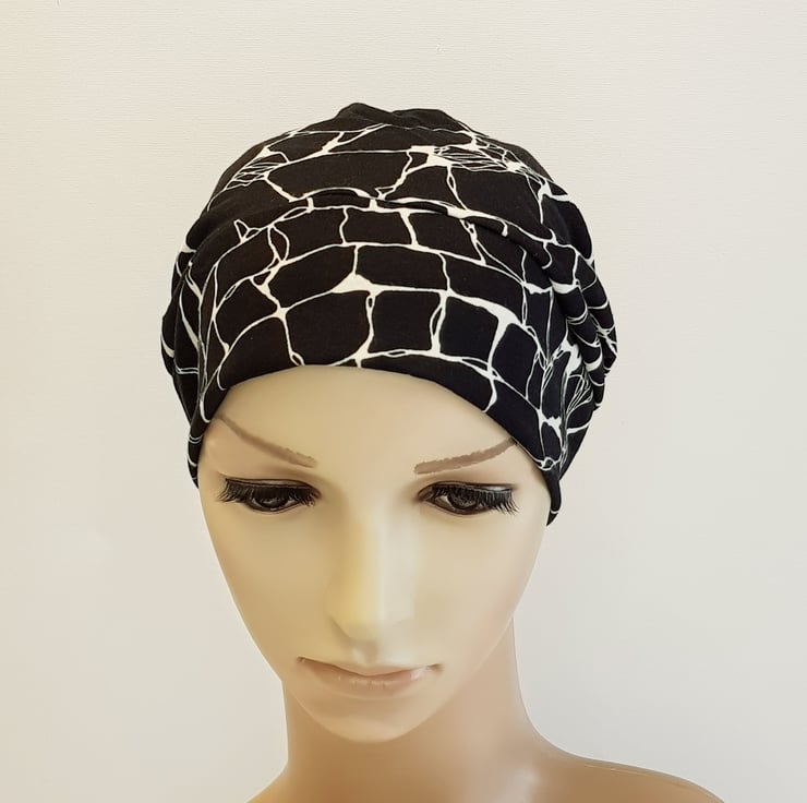 Lightweight viscose jersey beanie for women, messy hair day hat, hair care.