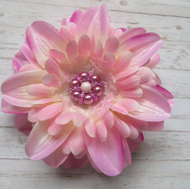 This is a pretty hair flower in shades of pale pink & lavender pink.