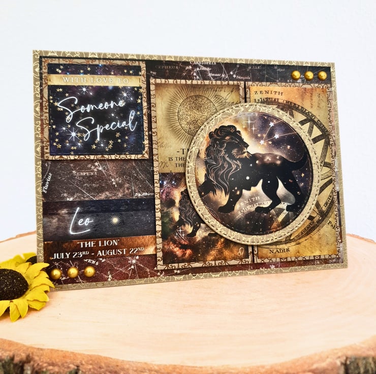 A unique birthday card for anyone born between July 23rd - August 22nd, under the zodiac star sign of Leo!