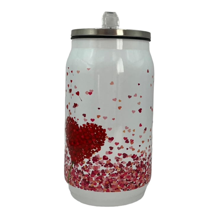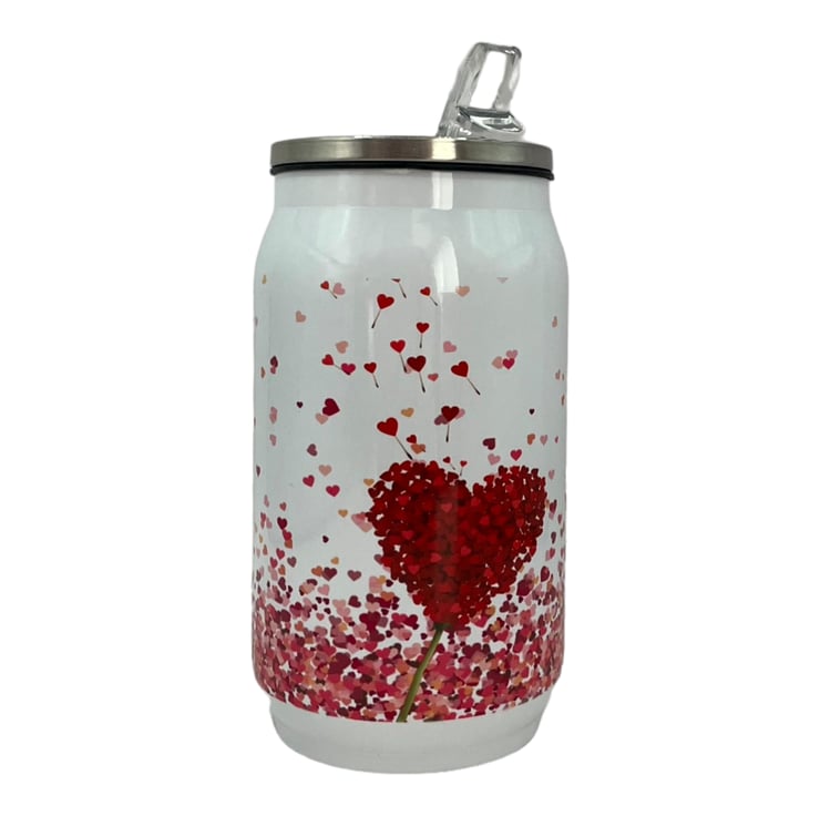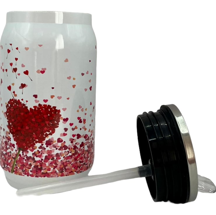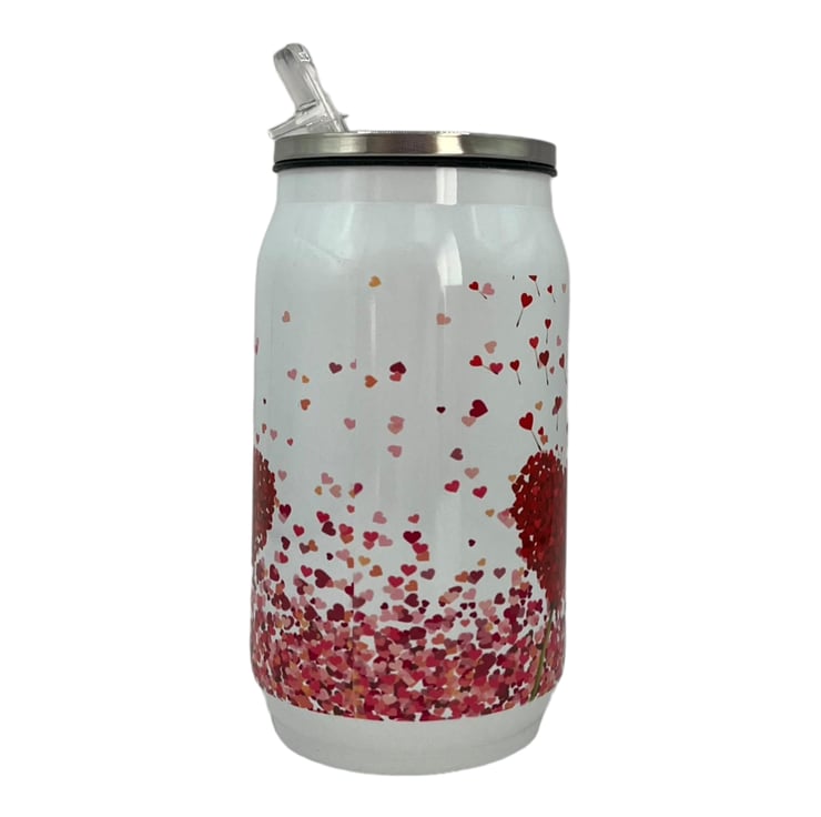 This white and red heart water bottle with a lid and straw is not only stylish but also functional. The vibrant red colour combined with the crisp white background creates a striking contrast that is sure to catch the eye of anyone who sees it.