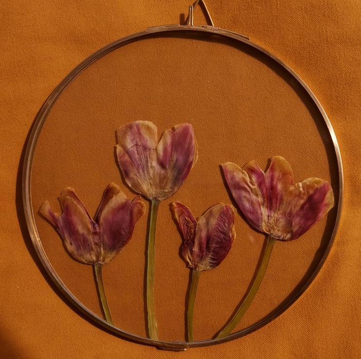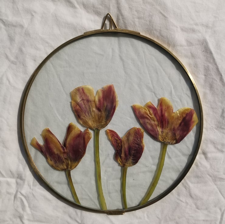Pressed tulips have a beautiful way of capturing the warmth of the sun that we feel at spring time. Always a very exciting time. This piece served as a reminder of that :)