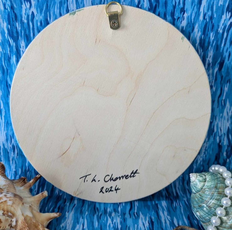 I have created it on a wooden round which is 20.5cm in diameter and 1.3cm thick.