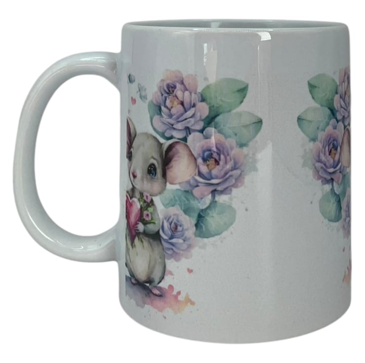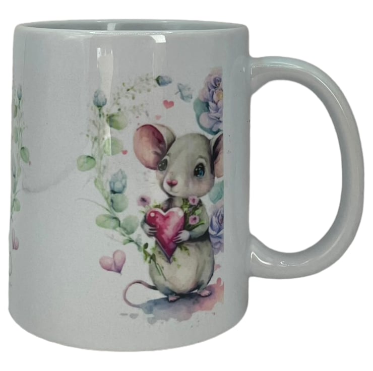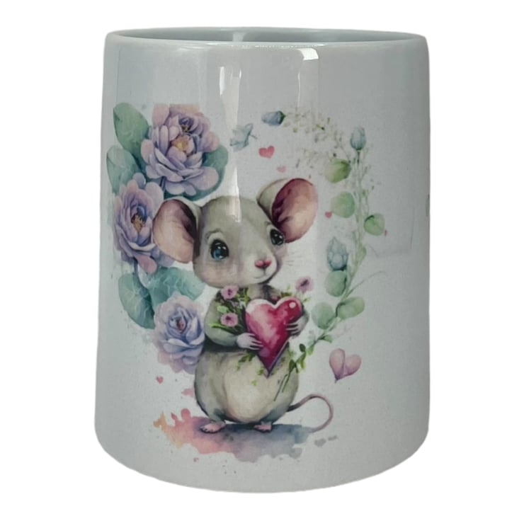 This adorable mug with a watercolour style mouse holding a heart is the perfect addition to your morning routine. Crafted with attention to detail, this ceramic mug features a charming design that will bring a touch of whimsy to your coffee or tea time. The mouse holding a heart design adds a touch of sweetness and warmth to your daily routine, making it an ideal gift for yourself or a loved one.