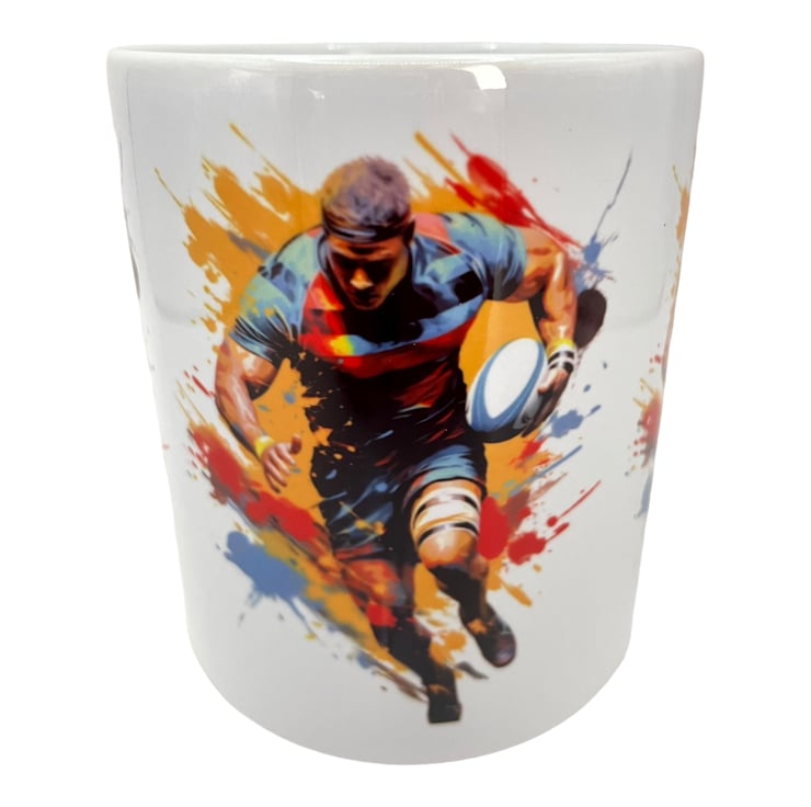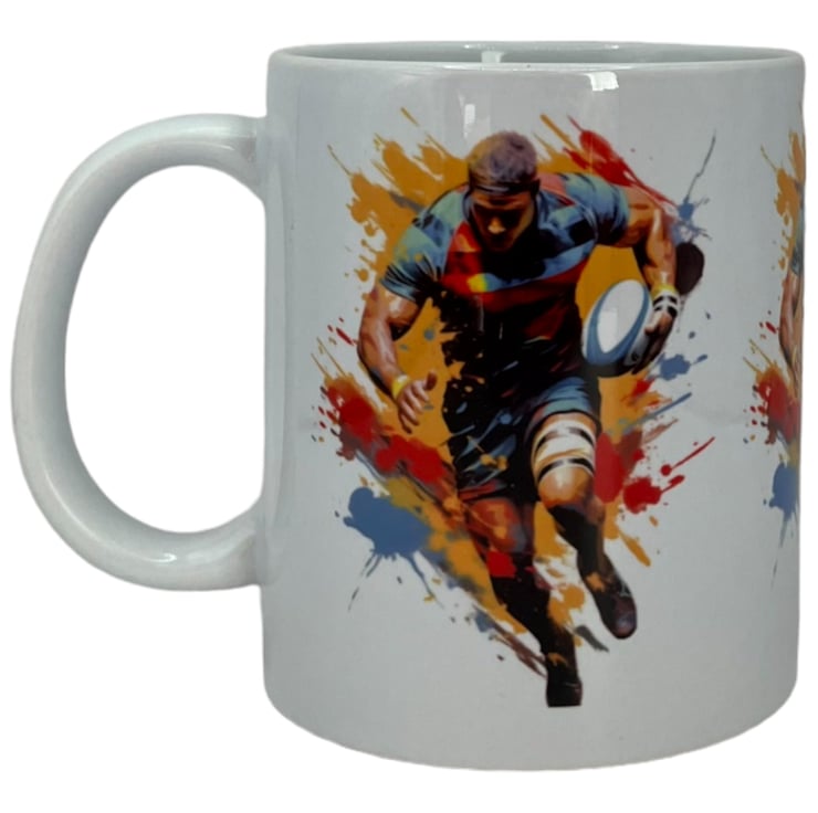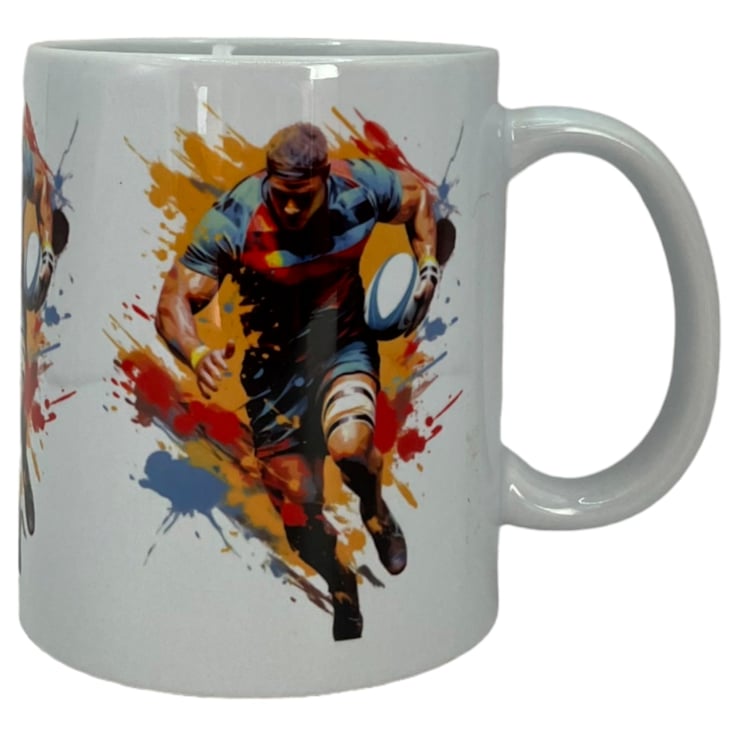 Introducing the perfect gift for any rugby enthusiast - the rugby player mug in classic white! This high-quality ceramic mug features a sleek design with a detailed illustration of a rugby player in action. Whether you're enjoying your morning coffee or sipping on your favourite tea, this mug is sure to bring a touch of sporty style to your daily routine. The white background makes the rugby player design stand out, creating a striking visual impact that will impress any sports fan.
