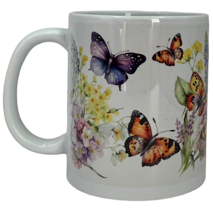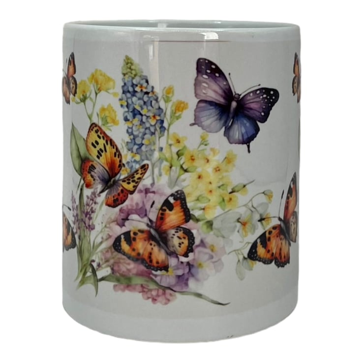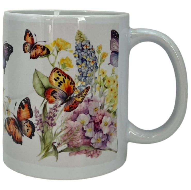 This beautiful butterfly and wildflowers mug is the perfect addition to your morning routine. With delicate butterflies and vibrant flowers adorning its surface, this mug will bring a touch of nature and beauty to your daily cup of coffee or tea. The colourful design is sure to brighten up your day and add a cheerful vibe to your kitchen or office space.