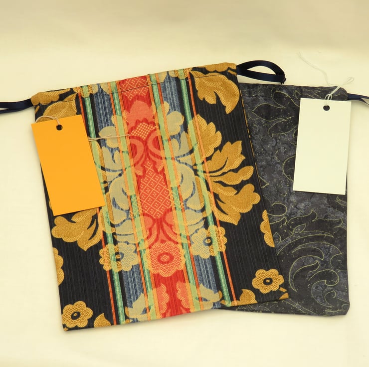 Two medium drawstring gift bags with coordinating tags. A lovely way to present a gift and the bags can also be used for storage or small projects - see images for suggestions.